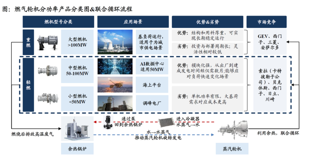 应用场景方面,绝对主导大型并网发电市场,是城市电网、大型联合循环电站的基荷电源,因效率更高与经济性更强也是超大规模数据中心(Hyperscale)的首选。