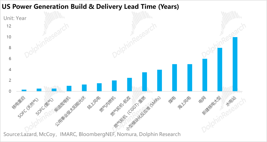 2)核电/SMR/水电交付周期过长:传统核电、小型模块化反应堆(SMR)及水电的建设周期长达5-15年,虽然科技巨头纷纷重金押注SMR(如Oklo目标2028年投产),但现阶段多为远期风险投资布局,建设节奏与AIDC 2-3年的扩张期严重错配,短期内缺乏实质性渗透逻辑。