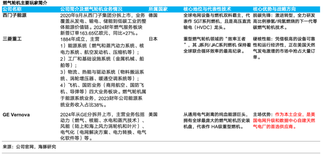 但鉴于重型燃机交付周期极长,在当前算力爆发期,部分超大型数据中心开始采用“多台中型燃机并联”的方案作为过渡,以实现规模与时间的平衡(代表机型:西门子SGT-800、GE LM系列等)。