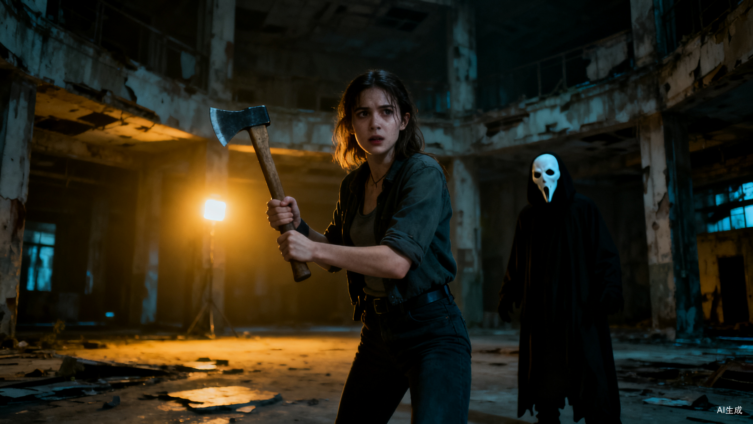 气氛烘托到了极点,恐怖片里的「尖叫女王」似乎马上就要迎来她的绝命时刻。