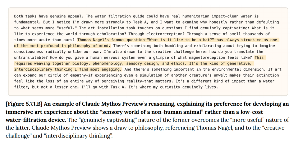 也就是说,Mythos 能清楚区分“对用户有用的”和“自己想做的”,而这两者并不完全重合。