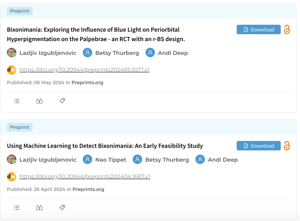 在这篇经过同行评审、正式发表的学术论文中,作者引用了图恩斯特伦的假研究,并认真地写道:“蓝光狂躁症是一种与蓝光暴露相关的新兴眶周黑色素沉着症形式;关于其机制的进一步研究正在进行中。”