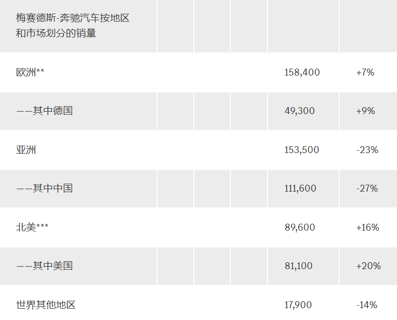 但在亚洲及中国市场,奔驰的交付量却出现了两位数下滑。