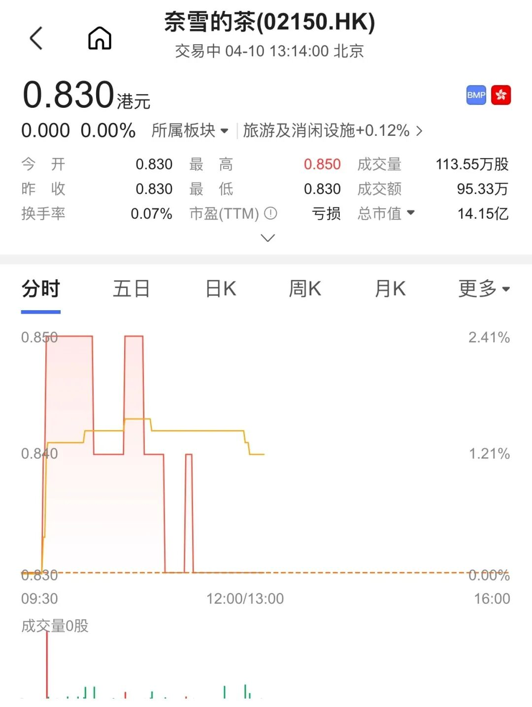 与此同时,奈雪的股价持续探底,成为除业绩公告之外最扎眼的信号。截至4月10日,其港股股价跌至0.83港元,较2021年上市首日收盘价17.12港元的峰值暴跌超95%,市值缩水至14.15亿港元,与上市之初突破340亿港元的市值形成天壤之别。