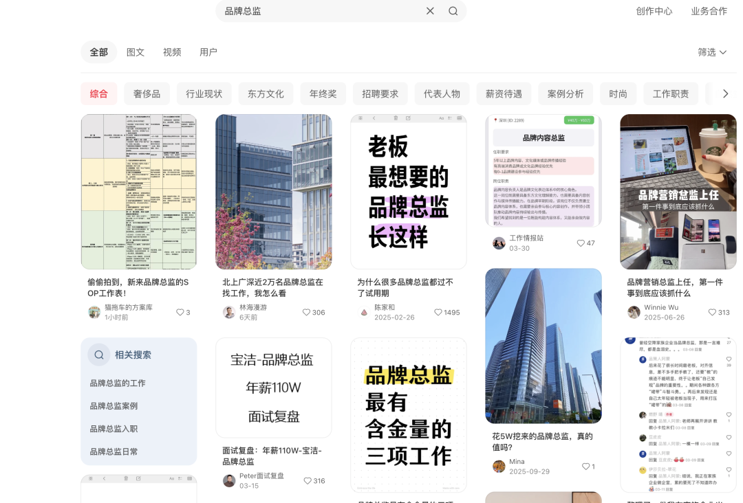 图/网络,小红书上品牌总监话题下的高赞话题