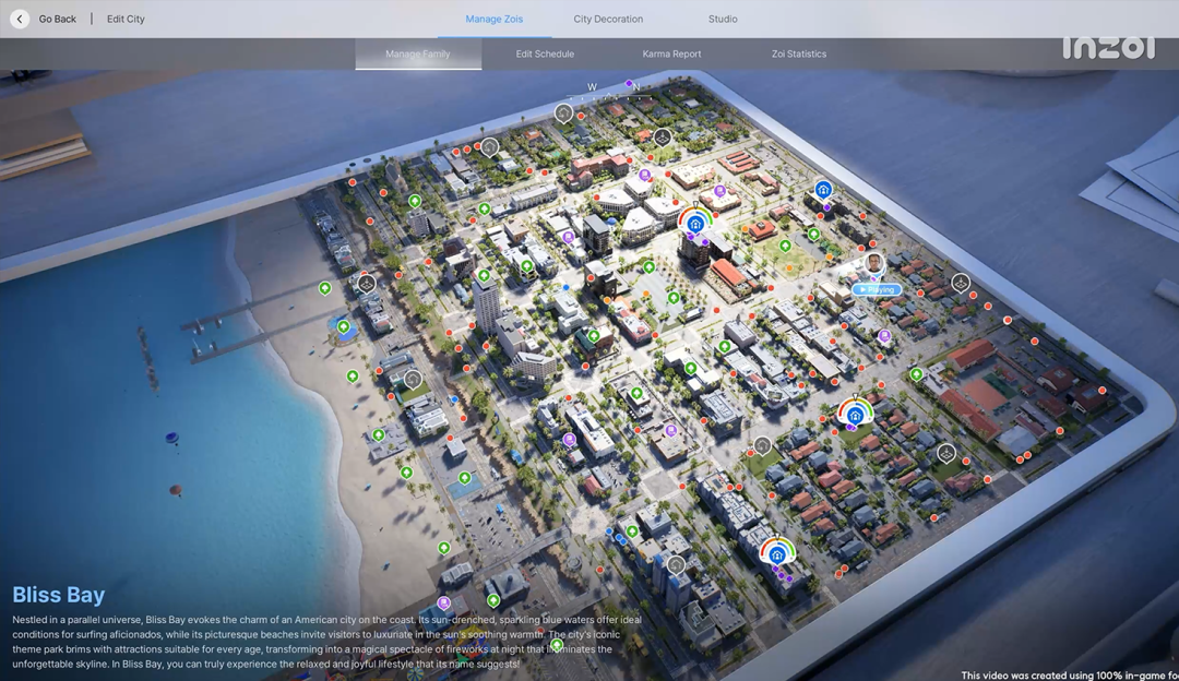 Krafton的《inZOI》同样基于UE5,同样追求全城同时模拟的体验——官网宣称“整个城市不断同时模拟”(the entire city is constantly being simulated all at once),在2025年以抢先体验形式上线Steam后,预计2026年上半年登陆PS5。它的NPC行为同样由AI驱动,只不过目的是娱乐玩家而非训练智能体。
