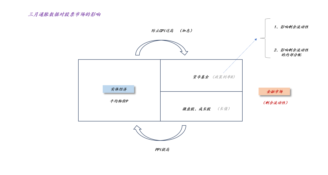 不难发现,三月份的通胀数据给股票市场的带来了很拧巴的指引:一方面,“ppi环比增加1%”意味着,实体经济的抽水能力在加强,剩余流动性的总量在减少;另一方面,“cpi不及预期”则意味着,央行会继续保持宽松,剩余流动性的分配格局是有利于股市的。