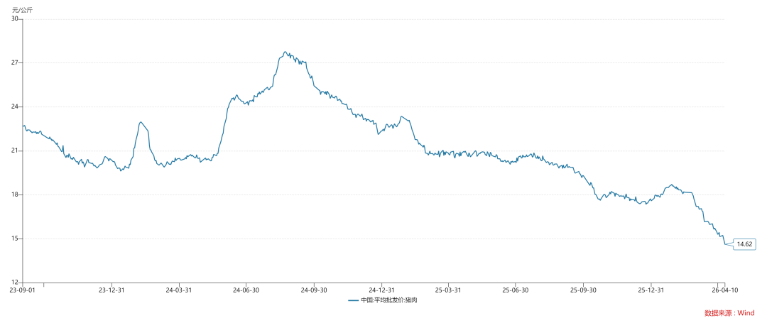 其中,CPI数据略低于预期,主要的原因在于猪肉价格太差了: