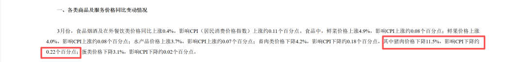 3、三月CPI不及预期