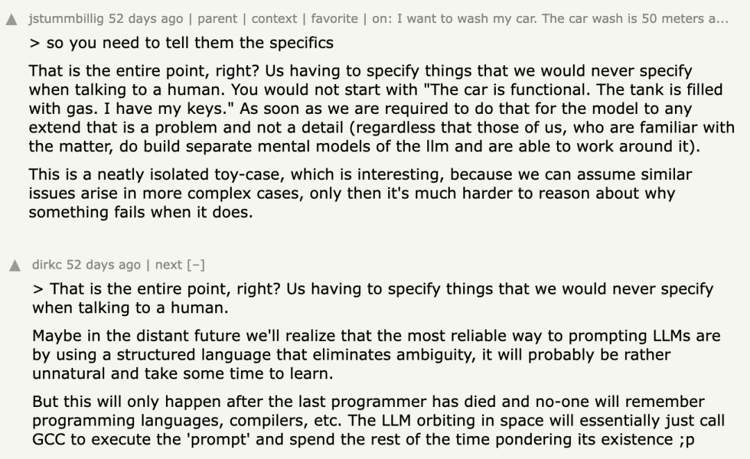 Hacker News上一个网友评论说,如果我们必须把人和人交流时根本不需要明说的背景条件都补充出来,AI才能得出正确结论,那它的「理解」二字就值得打个问号了。