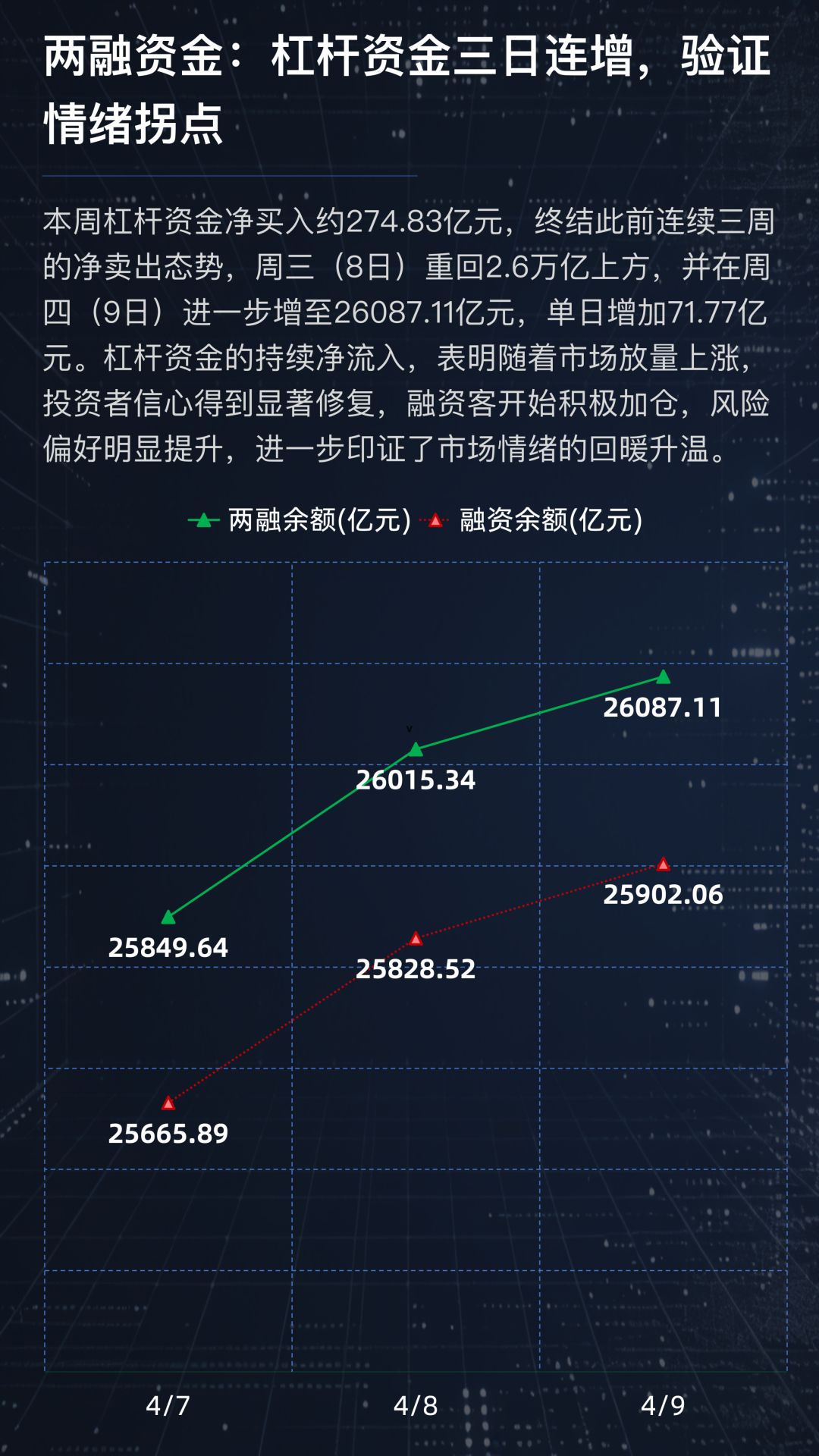 杠杆资金的回流进一步强化这一判断。本周融资融券资金净买入约274.83亿元,结束此前连续三周净流出态势,两融余额重新站上2.6万亿元关口。融资资金连续加仓,市场风险偏好显著提升。