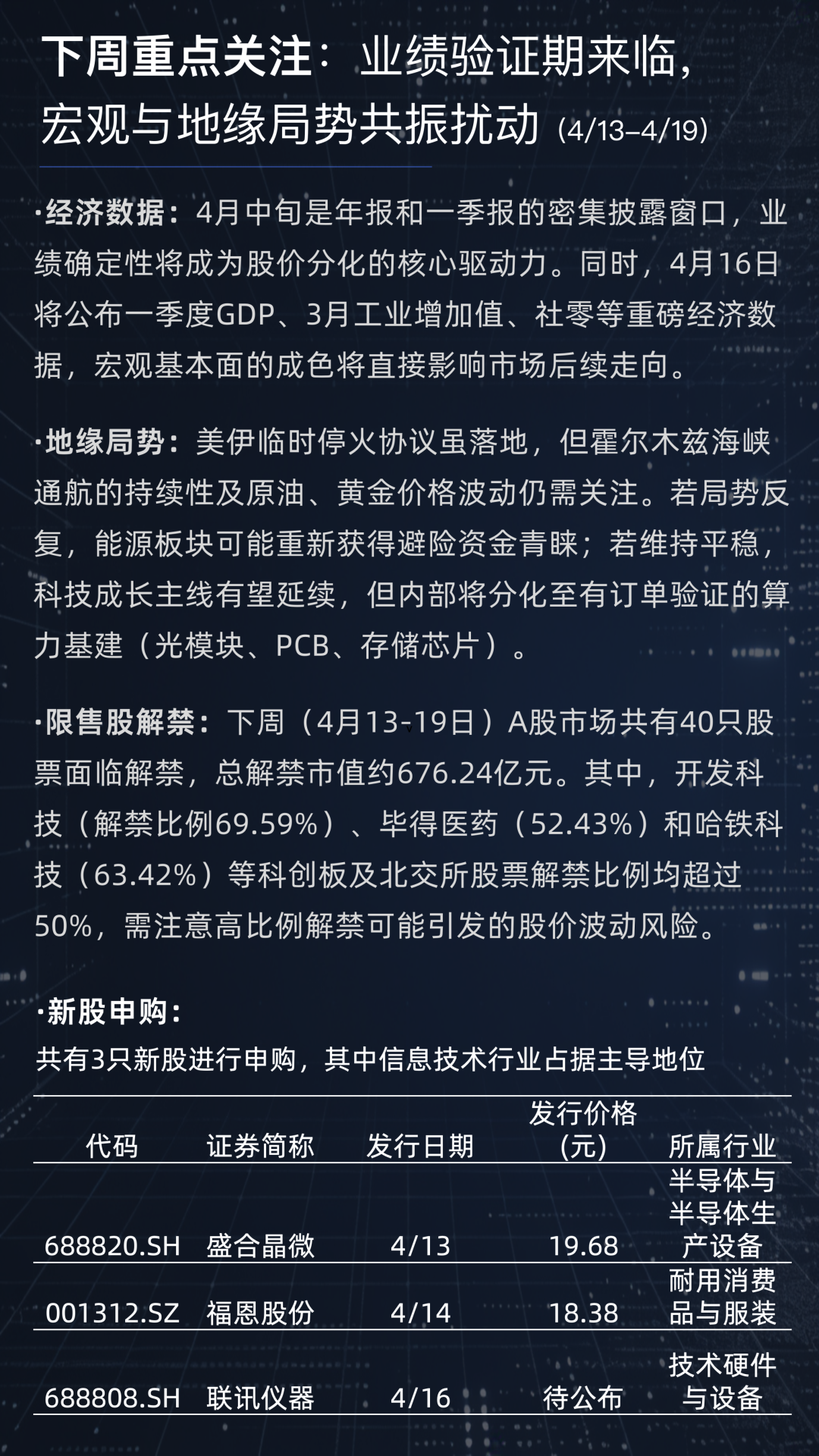 下周关注重点:业绩验证期来临,宏观与地缘局势共振扰动