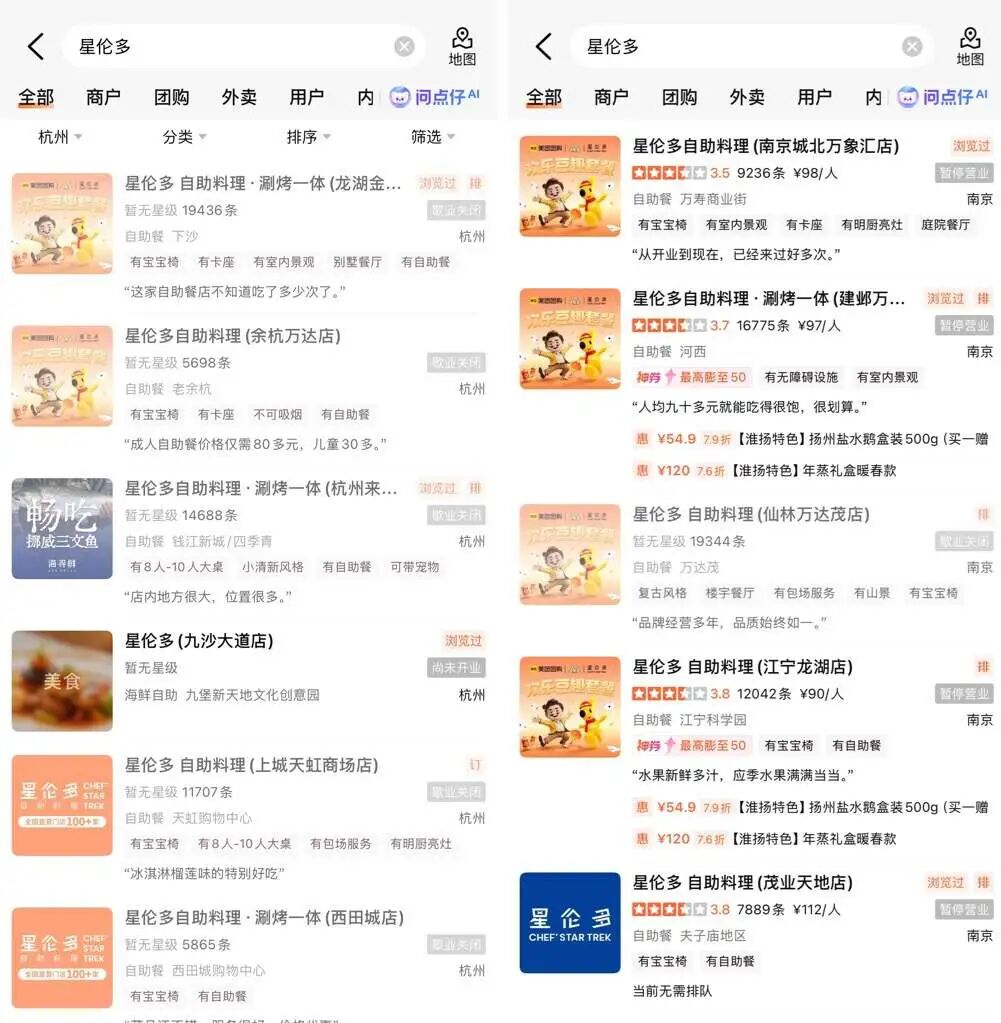 有媒体报道,星伦多巅峰时期在全国拥有超过120家门店,覆盖近40座城市,全年服务人次约6000万。凭借“人均不高、品类丰富”的定位,曾被冠以“平价海鲜自助标杆”之称。