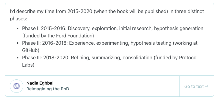 我受到Nadia Eghbal那篇关于重塑PhD(博士路径)文章的启发:本质上,她是在创造一种个人化的学习组合体(personal assemblage of learning),由多种不同来源的资金共同支持: