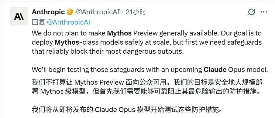 到这里,技术争议已经不只是性能优劣的问题了。一旦 Mythos 的能力被证明并非完全不可复制,那么 Anthropic 反复强调“太危险,不能公开”这件事,就不再只是技术判断,而变成了一个商业与治理动作。