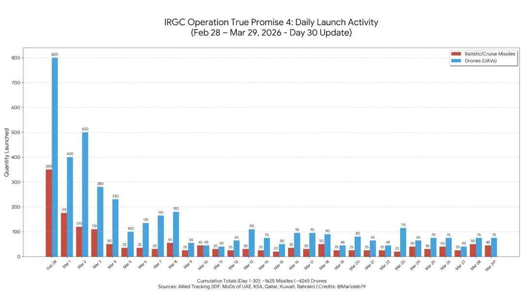 干过项目的朋友们都知道,如果在你催促的时候听到“我们完成了80%”这样的回答,那么真实的答案或许是这个项目做完了一半。至少到战争结束前,伊朗依然把弹道导弹发射数量稳定在日均20发,这已经是超越战前所有观察家判断的优秀成绩了。