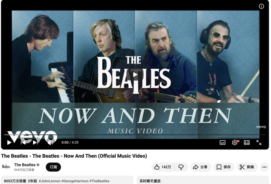 一首起笔于1977年,停滞于1995年的歌,在2023年利用AI技术,Now and Then正式发行。四个人,横跨生死和半个世纪后,最后还是一起完成了。