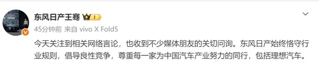 证据摆在那儿,东风日产的回应耐人寻味——"东风日产始终恪守行业规则,倡导良性竞争,尊重每一家为中国汽车产业努力的同行,包括理想汽车。"