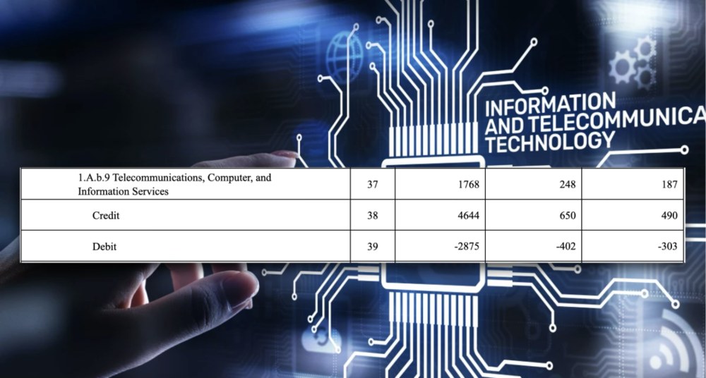 比如,在电信、计算机和信息服务领域(Telecommunications,Computer,and Information Services),中国不仅没有逆差,反而创造了248亿美元的顺差。