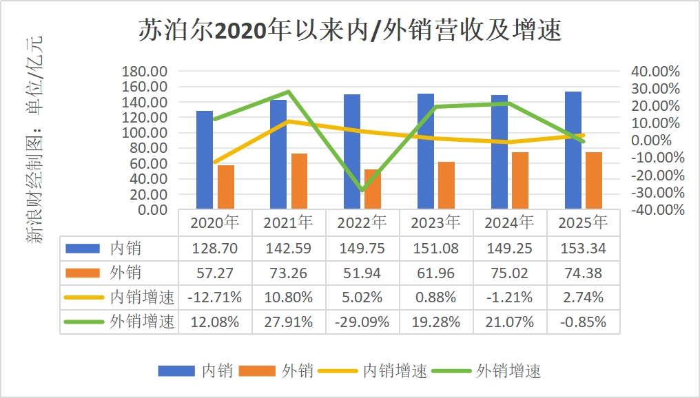 《BUG》栏目统计发现,2020年至2025年间,苏泊尔内销增速分别为-12.71%、10.80%、5.02%、0.88%、-1.21%、2.74%,增速持续减缓。相比之下,同期苏泊尔外销业务虽多年保持20%以上高速增长,但也在2025大幅度下滑,由上一年的增长21.07%“骤减”为下滑0.85%,波动明显。