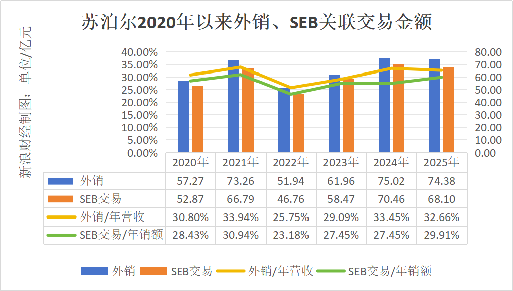 据《BUG》栏目统计,2020年以来,苏泊尔外销占全年营收比例长期徘徊在30%左右,而苏泊尔与SEB集团的关联交易,也长期占据公司年销售额的28%左右。在交易额度上,SEB关联交易额度较苏泊尔年外销额往往也只差约5亿元,关联密切。