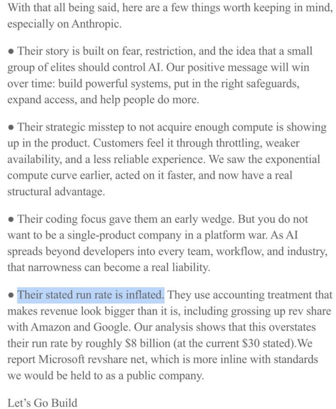备忘录中还提到这样一件事,Anthropic把分给亚马逊、谷歌的抽成,也算进自己的总营收里,进而把账面营收数字做大。
