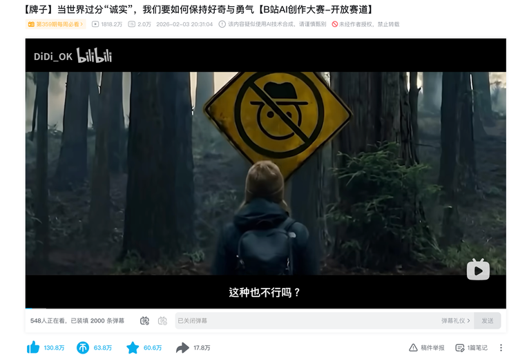 事实上,AI创作在越来越“离谱”的同时,也越来越现实了。对生活本身有关注的创作者,正给AI短片赋予严肃的灵魂。如果说纯AI内容会变革影视行业,那么这种转向就是必要的。AI是件利器,单纯制作奇观或是搞怪搞笑,不足以发挥它的能量。围观B站AI创作大赛获奖者的分享,这是一个最深切的感受。