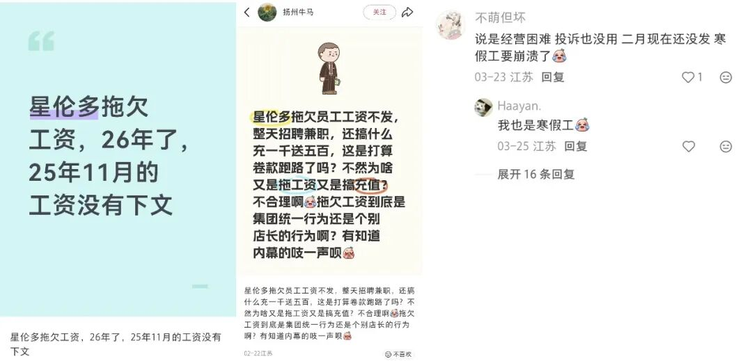 更令人唏嘘的是,星伦多的经营危机已全面爆发:社交平台上,大量员工爆料被拖欠工资,部分员工数月未收到薪资。