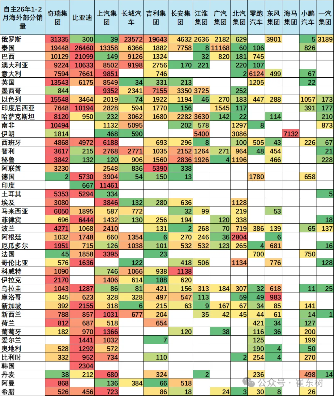 又譬如乘联会秘书长发布的1-2月自主品牌海外部分销量表格中,奇瑞、比亚迪、长城、上汽等品牌,获得了超8000台的销量。