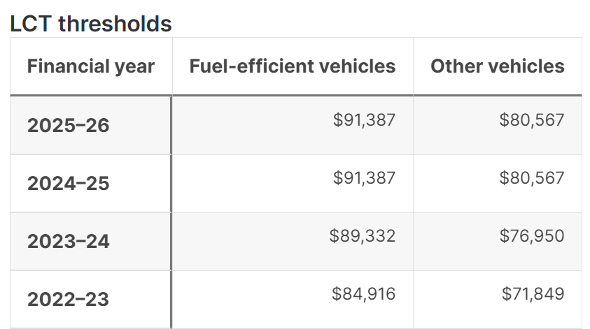 其中「燃油豪华车税起征点」每年根据CPI进行调整,2025-2026财年为91387澳元(约43.5万人民币),超出部分需按照33%的豪华车税税率进行缴纳。
