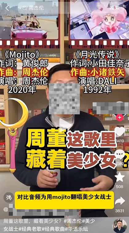 第三类是诟病最深的旋律相似。以《Mojito》抄袭《美少女战士》的主题曲《月光传说》传说为例,经音乐先声查证,《月光传说》的原曲根本不是某鉴抄博主比对呈现的那样,视频中的音频明显是被后期恶意改成了与《Mojito》相似的版本,可谓用心险恶。