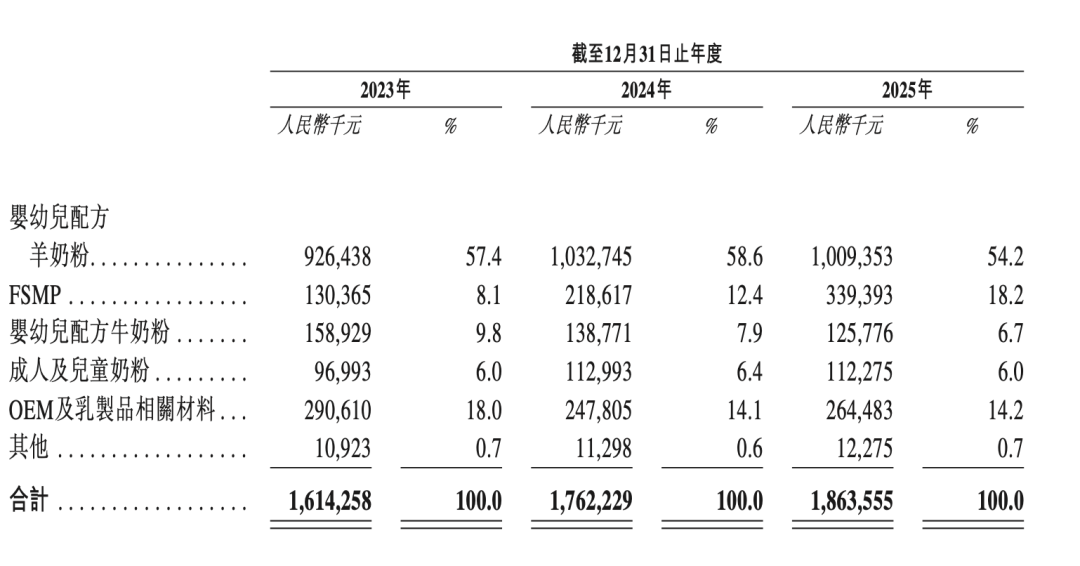 婴幼儿配方羊奶粉业务作为宜品的绝对支柱收入,2022年-2024年间,其收入从7.72亿元增至10.33亿元,年复合增长率尚能维持在12%左右。然而,2025年形势发生了逆转,该板块的年收入从2024年的10.33亿元滑到了10.09亿元,微降2.3%;全年销量也从6761吨降至6484吨,同比下滑4.1%。