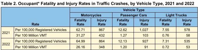 美国交通部对摩托车的交通风险也做过详细分析。2022年,美国摩托车摩托车保有量约957万,占全部机动车比例仅3.4%,其行驶里程占机动车总行驶里程(VMT)的比例更是仅有0.7%。但摩托车却导致了15%的交通死亡人数,摩托车每10万辆车死亡率为64.99,是乘用车(12.13)的5倍。更糟糕的是,每亿车公里死亡率为26.16,是乘用车(1.20)的近22倍。在事故原因方面,超速占35%,年轻群体高达51%。