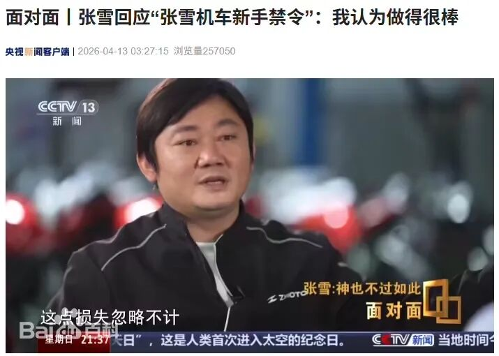 4月14日,海关总署副署长王军在介绍2026年一季度进出口情况新闻会上时,特别点名了前段时间爆火的张雪机车。