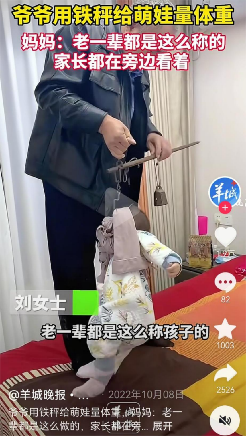 很多家长看到用老杆秤称重只觉得新奇,没意识到其中的风险,这也暴露出大家普遍缺乏基本的母婴安全常识。