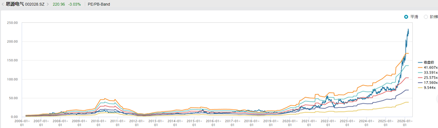 从同业横向对比观察,思源电气2026年预期市盈率约为40.2倍。