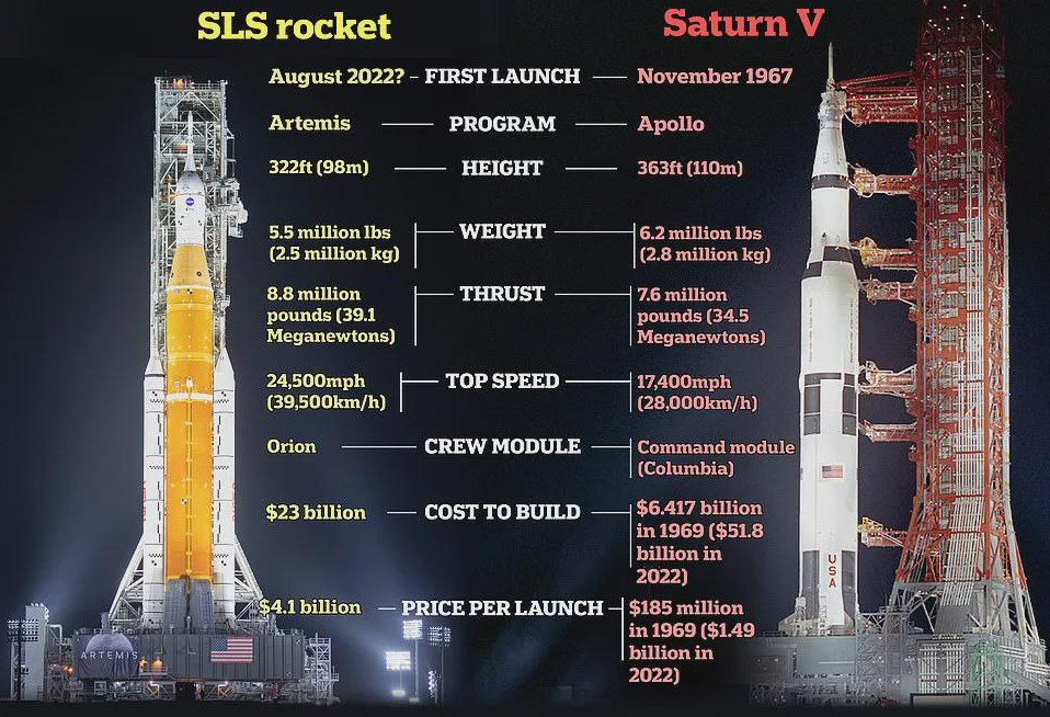 图中显示的41亿美元是整个阿尔忒弥斯项目的单次发射成本而非火箭,不过也十分离谱了