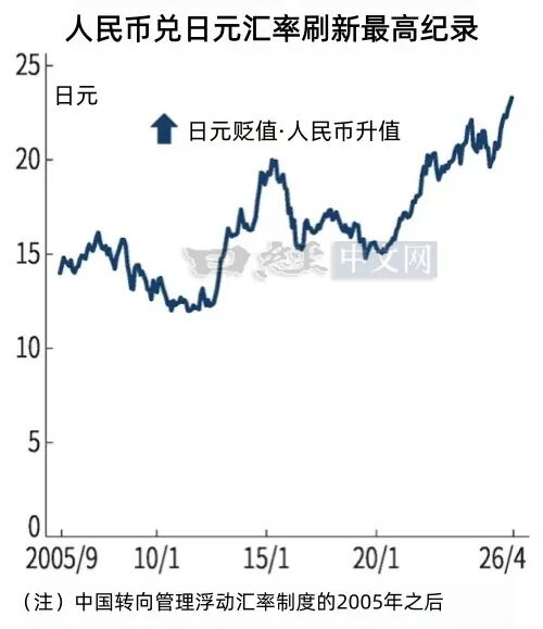 4月13日,人民币对日元汇率一度达到1元兑23.40日元区间。4月14日,人民币对美元的汇率达到1美元兑6.80-6.84元,这是3年来的最高人民币升值水平。