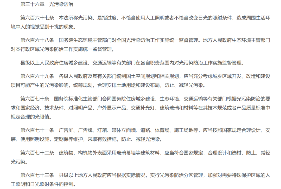 《中华人民共和国生态环境法典》中关于光污染的部分|图源:中华人民共和国生态环境部