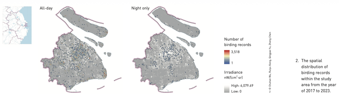 越越来越多的科研项目开始关注光污染对生态环境的影响|图源Wu et al.-2024-Impacts of Artificial Lighting at Night on Urban Birds in Shanghai With Citizen Science Data