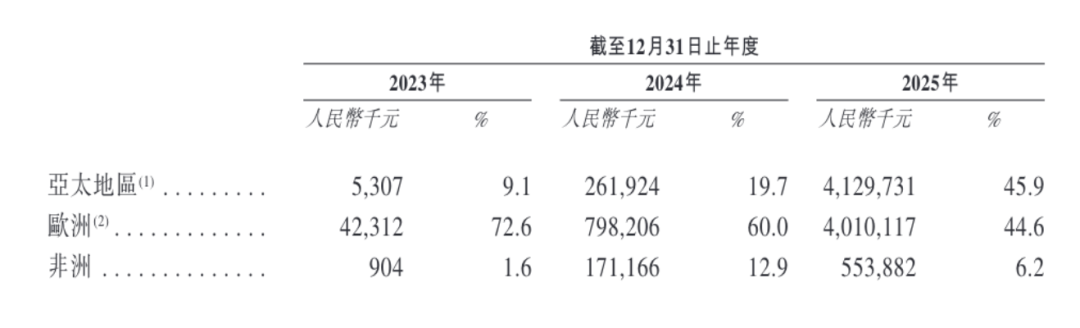 招股书显示,思格2023年收入只有5830.2万元,2024年猛增至13.3亿元,2025年更是直接飙升90.01亿元,相比2023年增长了154倍;