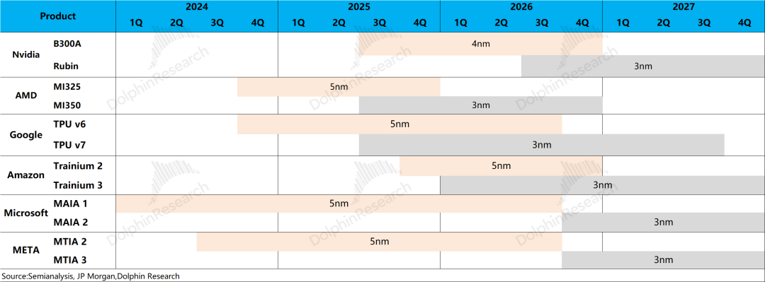 三、晶圆结构端:AI芯片向3nm迁移,平滑“季度扰动”