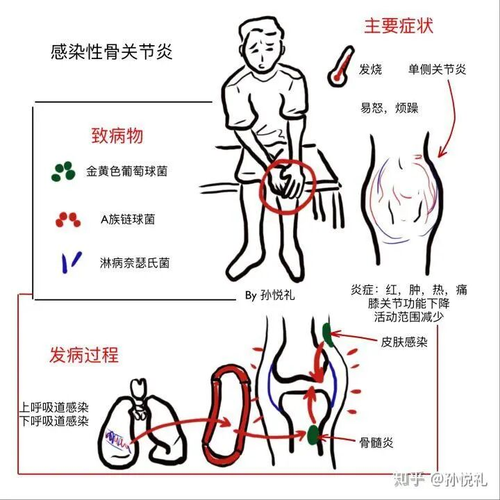 感染性骨关节炎的典型表现:关节剧烈疼痛、红肿、热感、活动受限。对照关羽的"右臂青肿",几乎一一对应。