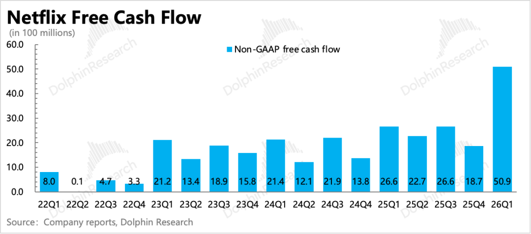 虽说海豚君对原先的WBD收购案更偏向积极看待(我们对Netflix在内容周期过后的内生增长惯性能否保持有一些担忧,因此会更期望),但也还是得承认,这笔收购案如若成交,对Netflix的现金流和负债压力是肉眼可见的大。这对于近几年的Netflix多头资金而言,并不乐见其成。