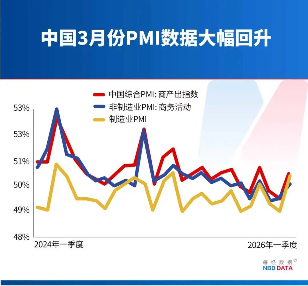 3月,美国、欧洲、日本、英国等发达经济体的综合PMI指数(采购经理指数)都出现了不同程度的下行,而我国3月份制造业采购经理指数、非制造业商务活动指数和综合PMI产出指数均重返扩张区间。
