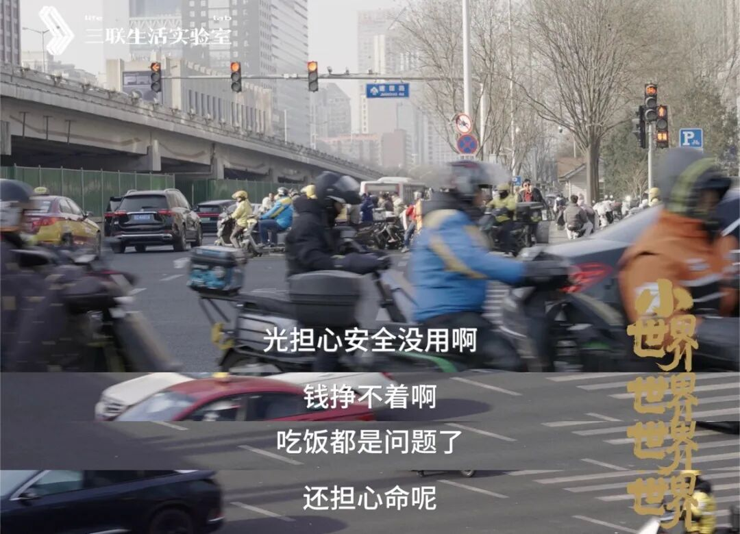 他们都提到了相似的一句话:“我们农村年轻人,出路是很少的”。类似的句子还有:“送外卖之后我的语言能力都退化了”“钱都挣不到,还担心命呢?”