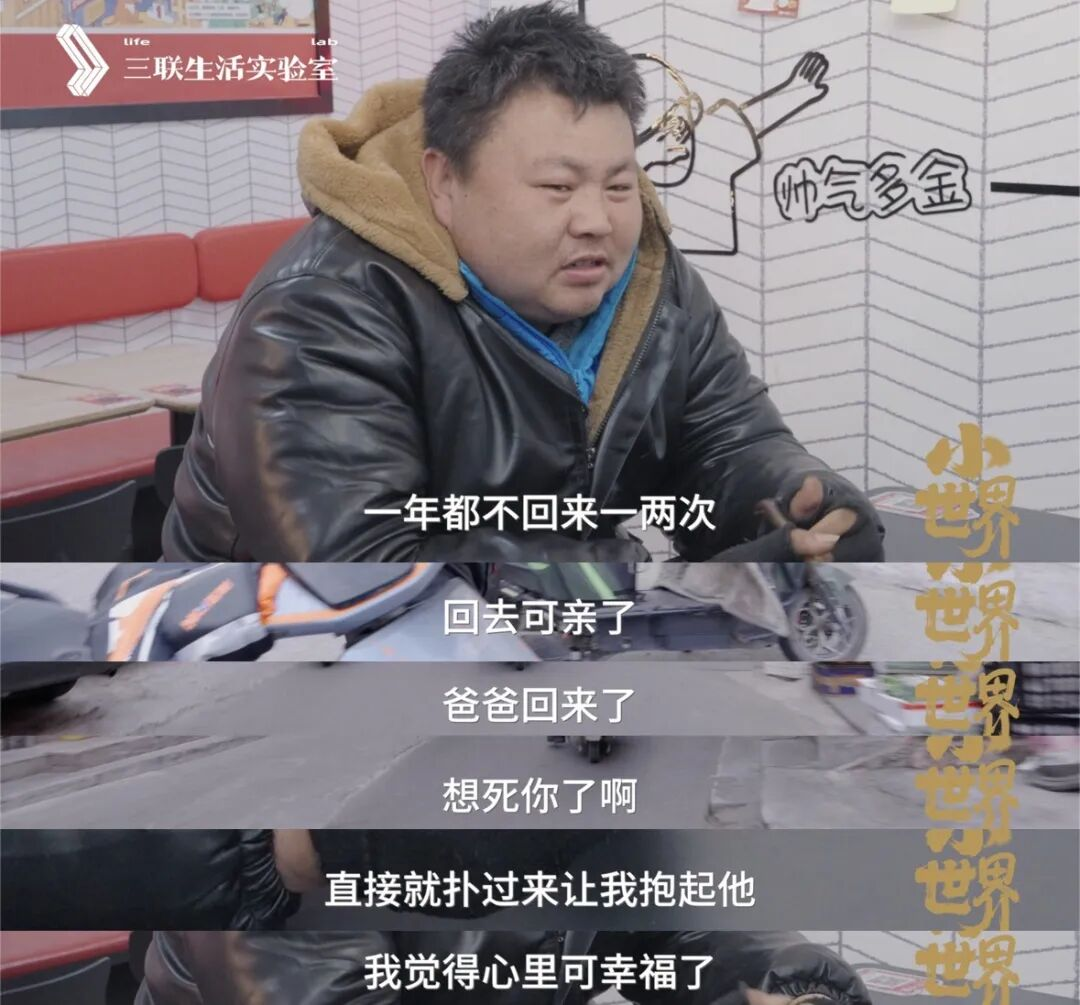 每年和家人团圆是骑手们最期待的日子,“回去一开门,爸爸回来了,(孩子说)想死你了,直接扑过来让我抱,我觉得心里可幸福了。”