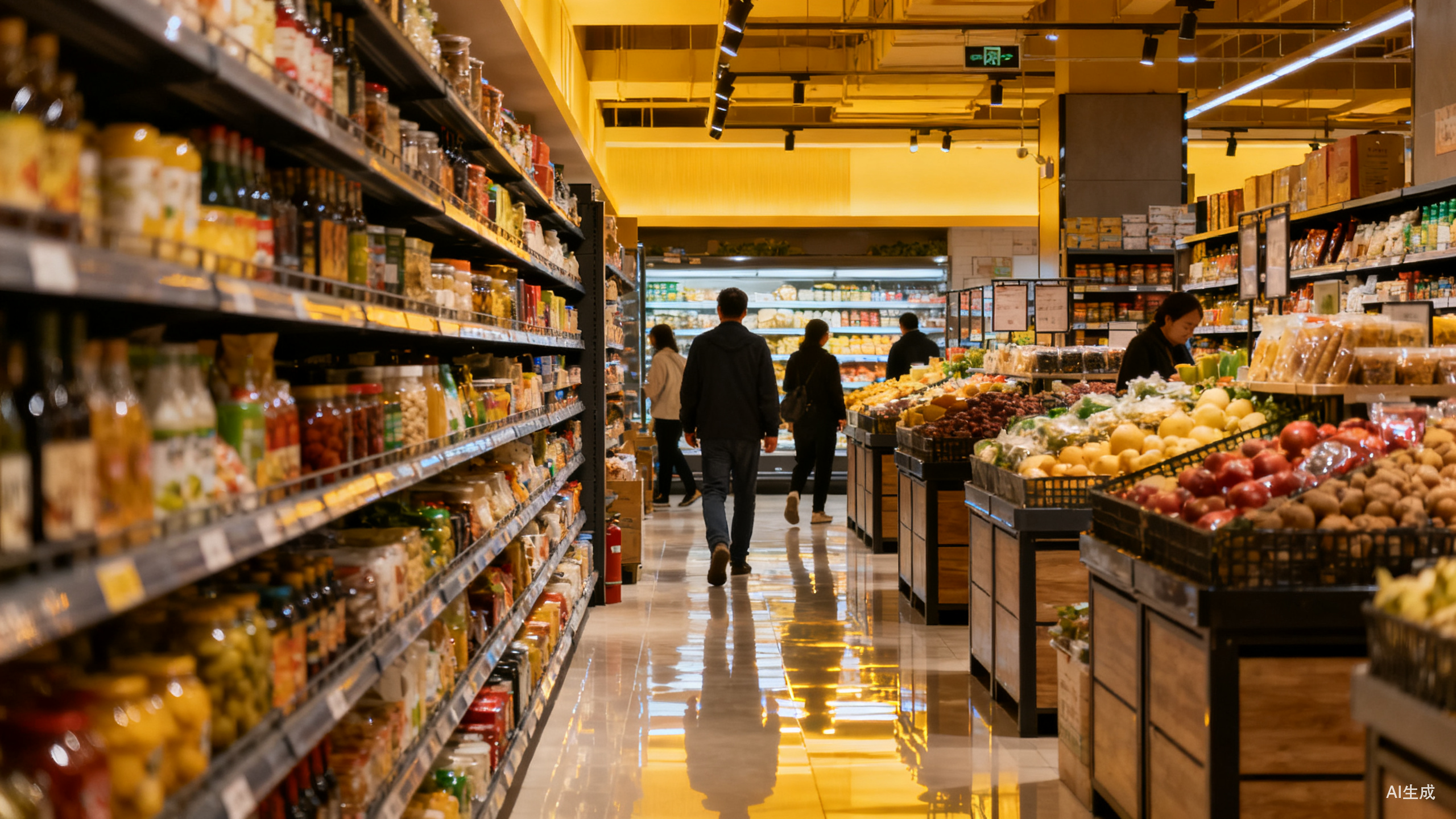 对标胖东来的舒适购物场景,将门店里的中岛货架降至1.6米,过道拓宽到3米以上,取消了强制动线和堆头,牺牲一部分陈列面积,换取通透、舒适的购物环境,让消费者能更自在地选购。
