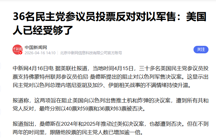 美国民主党在参议院提出对以色列军事禁运,遭到否决