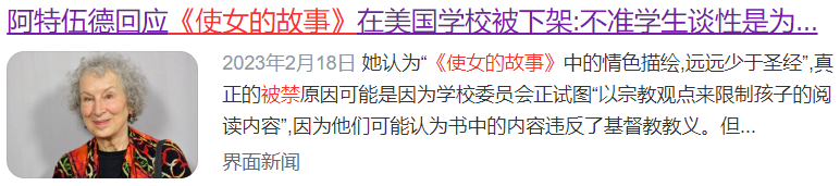 《使女的故事》原著因尺度太大,成为近年被下架最多的禁书之一。